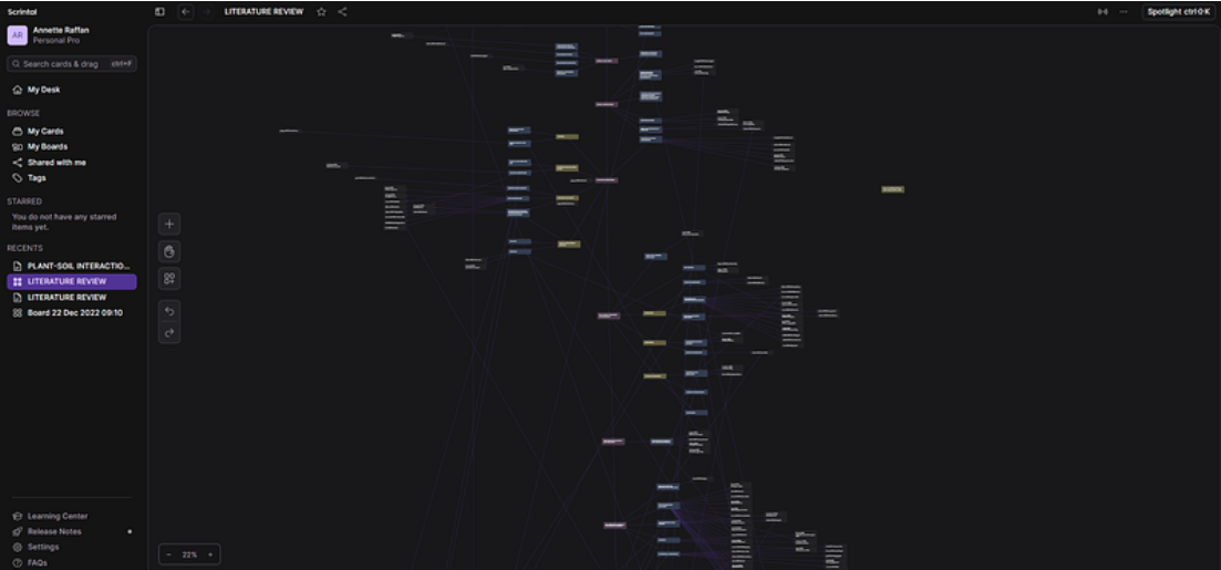 Scrintal was a life-saver for me. I literally created my whole literature review structure with it. I donāt (currently) use Scrintal for writing, but I do use it for converting a 3D web of notes into a linear structure.